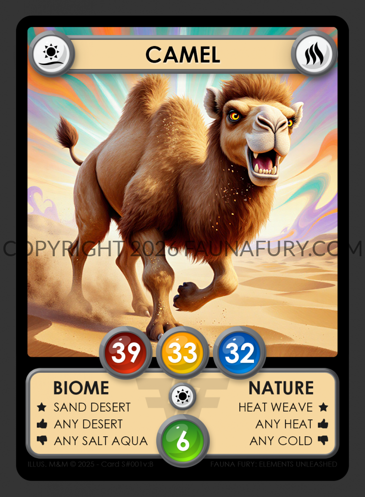 Each Fauna Fury card is crafted to represent its animal’s essence. Our beautiful card designs showcase vibrant illustrations and detailed stats, highlighting each animal’s strengths, intelligence, and tamability. Explore various biomes, from dense jungles to dry deserts, and plan your moves based on the animal’s preferred habitat. Discover the balance of nature with each card and engage in exciting battles where points and strategy decide the winner. Master the wild with Fauna Fury’s exceptional card game.