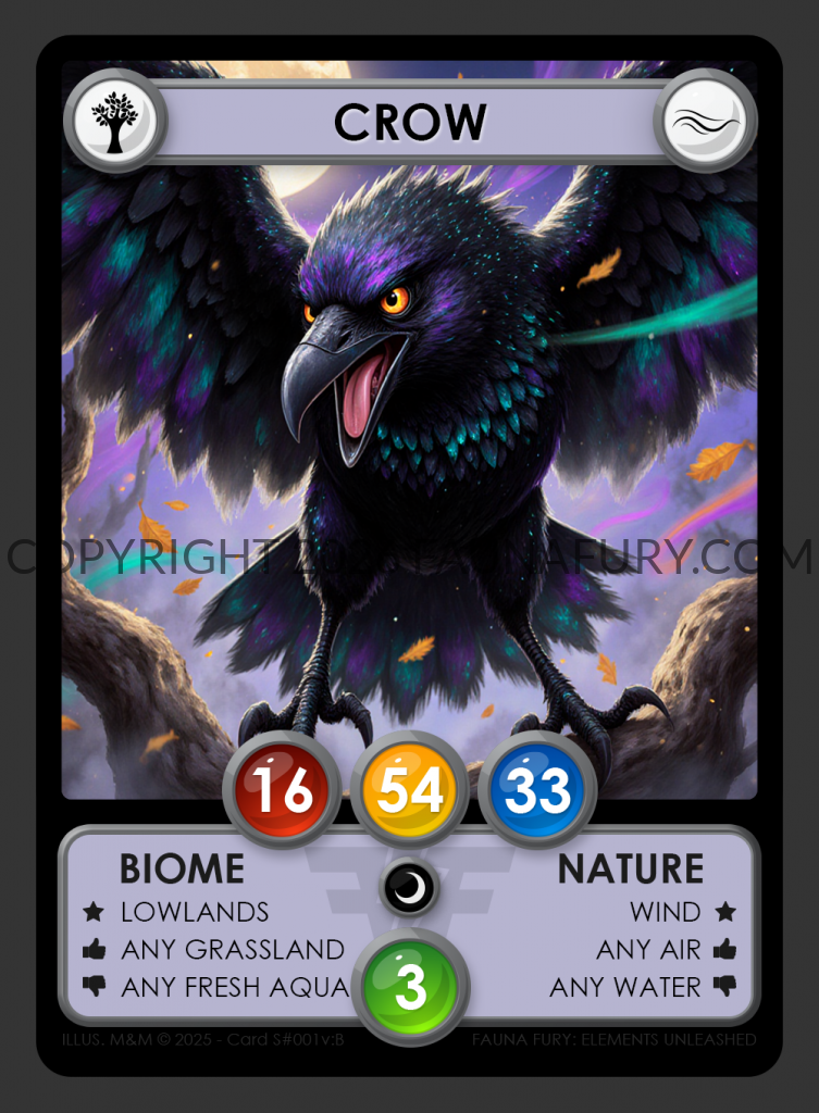 At Fauna Fury, we’ve transformed card layout design, combining familiar elements with fresh innovation for a unique gaming experience. Our card design and layout may remind you of classic designs, but each part has been carefully updated to make gameplay more exciting. Our cards keep the feel of traditional designs, ensuring comfort and familiarity, while adding new elements for a fun twist. With vibrant illustrations and easy-to-understand symbols, our card design enhances gameplay clarity and enjoyment. Get ready to enjoy a mix of tradition and new ideas as you explore the world of Fauna Fury.